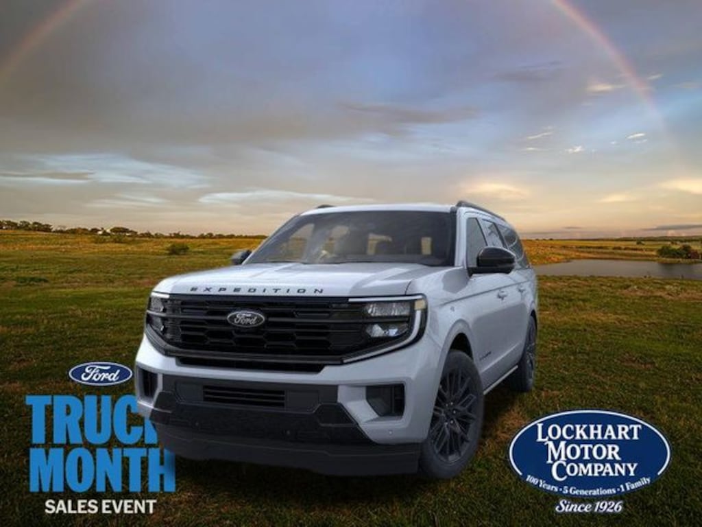 Lockhart Motor Company is a trusted, family-owned Ford dealership proudly serving Lockhart, TX since 1926. Owned and operated by the Clark family for nearly a century, weâre dedicated to providing honest service, a transparent no-pressure sales experience, and reliable Ford cars and trucks to generations of Texans. Whether youâre shopping for a new or used vehicle, need financing assistance, or looking for expert service and repairs, our team is here to help. Call or visit us today to experience the hometown dealership that has built its reputation on integrity, quality, and community. Equipment Group 600A Standard Package (2nd Row Power-Folding Captain's Chairs, 3.73 Axle Ratio, BlueCruise Equipped (90-Day Trial), Ford Digital Experience, Heated and Ventilated Leather Front Captain's Chairs, Power Tilt/Telescopic Steering Wheel with Memory, Radio: B&O Sound System by Bang and Olufsen, SiriusXM with 360L, and Wheels: 20" x 8.5" Ebony Bright Machined Aluminum), Ford Connectivity Package (1-Year Included), Stealth Appearance Package (Black Belt Molding, Black Expedition Lettering on Hood, Black Headlamp Bezel with Ebony Trim Applique, Black Platinum Badge on Tailgate, Black Roof Rails, Carbon Black Front Bumper/Fascia, Rear Side Windows Laminated Glass, and Signature Grille Lighting), 10 Speakers, 3rd row seats: split-bench, 4-Wheel Disc Brakes, ABS brakes, Air Conditioning, Alloy wheels, AM/FM radio: SiriusXM with 360L, Apple CarPlay/Android Auto, Auto High-beam Headlights, Auto-dimming door mirrors, Auto-dimming Rear-View mirror, Automatic temperature control, Brake assist, Bumpers: body-color, Compass, Delay-off headlights, Driver door bin, Driver vanity mirror, Dual front impact airbags, Dual front side impact airbags, Electronic Stability Control, Emergency communication system: 911 Assist, Exterior Parking Camera Rear, Four wheel independent suspension, Front anti-roll bar, Front Bucket Seats, Front Center Armrest, Front dual zone A/C, Front License Plate Bracket, Front reading lights, Fully automatic headlights, Garage door transmitter, Genuine wood dashboard insert, Genuine wood door panel insert, Heated door mirrors, Heated front seats, Heated rear seats, Heated steering wheel, Illuminated entry, Intersection Assist, Leather steering wheel, Low tire pressure warning, Memory seat, Navigation System, Occupant sensing airbag, Outside temperature display, Overhead airbag, Overhead console, Panic alarm, Passenger door bin, Passenger vanity mirror, Power door mirrors, Power driver seat, Power moonroof: Vista Roof, Power passenger seat, Power steering, Power windows, Radio data system, Rain sensing wipers, Rear air conditioning, Rear anti-roll bar, Rear reading lights, Rear window defroster, Rear window wiper, Reclining 3rd row seat, Remote keyless entry, Security system, Speed control, Speed-sensing steering, Speed-Sensitive Wipers, Split folding rear seat, Spoiler, Steering wheel memory, Steering wheel mounted audio controls, Tachometer, Telescoping steering wheel, Tilt steering wheel, Traction control, Trip computer, Turn signal indicator mirrors, Variably intermittent wipers, Ventilated front seats, and Voltmeter.